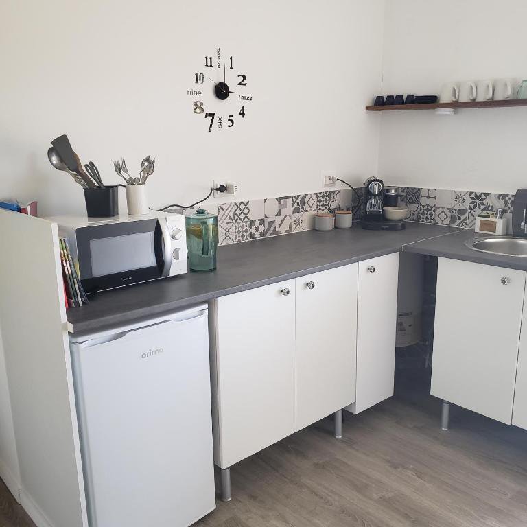 Este apartamento dispõe de 1 quarto, uma cozinha equipada com frigorífico e micro‑ondas, e 1 casa de banho com chuveiro, produtos de higiene pessoal gratuitos e máquina de lavar roupa. Toalhas e roupa de cama são fornecidas para maior conforto dos hóspedes.