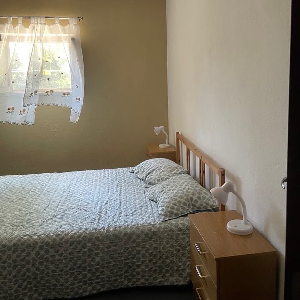 A cosy house with 3 bedrooms, living room, kitchen, one bathroom, and a backyard with a barbecue.