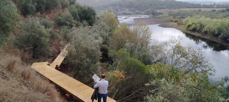 Installed along the right bank of the river, at the foot of Ortiga, it will be the leading thread of a visit with a viewpoint over the water course, over the traditional fishing grounds and a connection to the Tagus Lagoons. The aim is to "give the river back to the people, to show and preserve the stories, memories and experiences of the people of the municipality, and particularly of Ortiga", where fishing was for decades the main livelihood of families, being besides tradition, part of the identity of a people and an icon of local heritage.