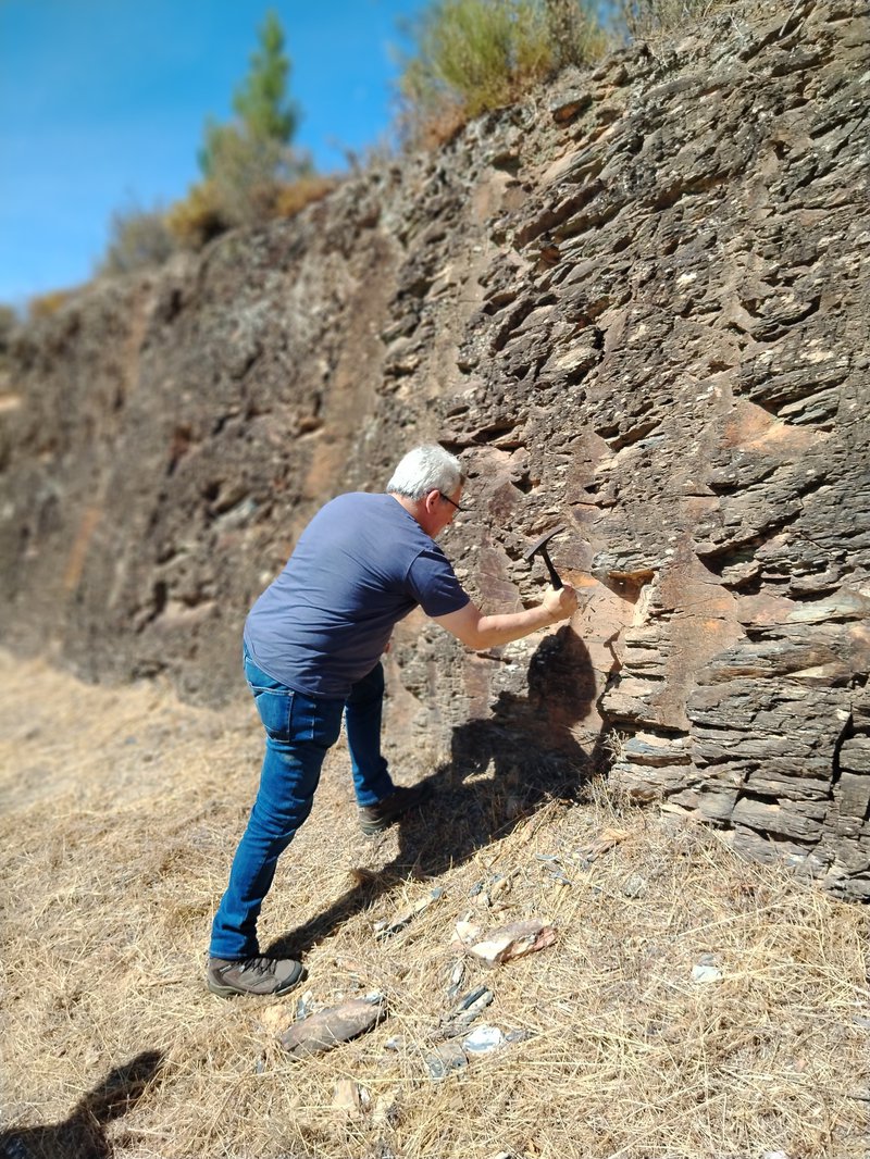 Dark claystones; Cabeço do Peão Formation. Upper Ordovician. Trilobite fossils: Prionocheilus verneuilli.