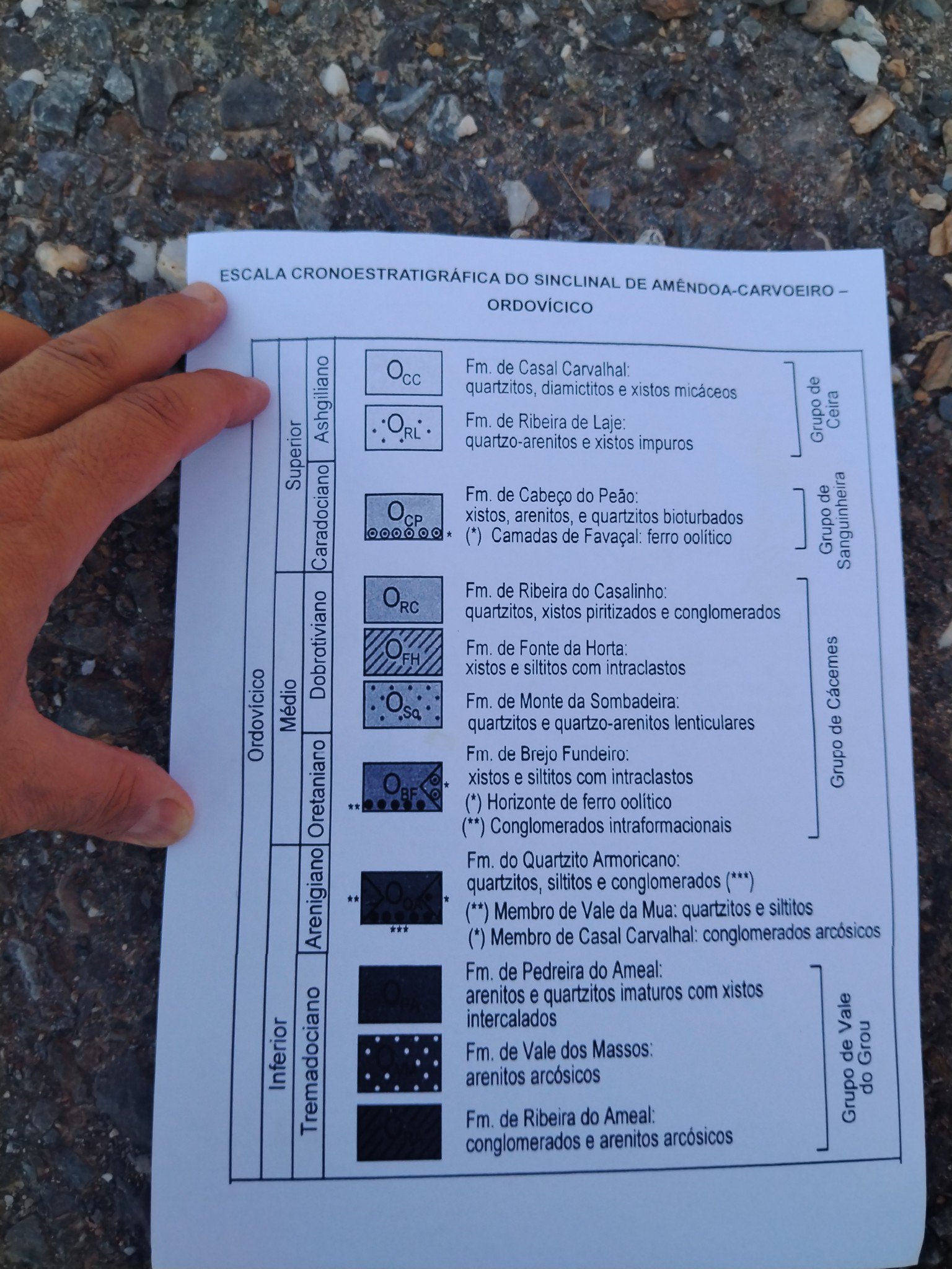 The Cabeço do Peão Formation consists of one or two oolitic iron beds (“Camadas de Favaçal”) at the base, overlaid by micaceous pelites, with fauna rich in bryozoans and echinoderms (Queixopêrra Member).